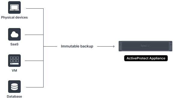 了解其他客户的使用心得“Active Backup for Business 使我们可以提升备份速度,并且在删除重复数据方面效果杰出- 总共 58 TB 的数据只占用了服务器的 28 TB。我们对整体性能非常满意。”更多信息“得益于 Active Backup for Business,我们的所有备份现在都集中存储并且全天候可用,这有助于我们尽可能减少停机时间并保持遵守 FERPA 法规。”更多信息“在 Synology Active Backup for Microsoft 365 的帮助下,我们可以保护和还原 Microsoft 365 服务中的数据,以防发生意外删除或数据丢失的情况。”更多信息深入了解 Synology 数据备份解决方案防范勒索病毒勒索病毒是导致数据丢失的重要原因之一。了解如何保护数据免受外部威胁。更多信息备份解决方案指南下载 Synology 备份解决方案指南。更多信息个人数据备份详细了解如何保护重要的文档和数字资产。更多信息企业备份了解如何使用 Synology 的数据保护解决方案保护您的业务数据。更多信息开始使用进行联系联系我们NAS 型号筛选更多信息注意:备份到公有云只适用于共享文件夹。仅适用于共享文件夹和启用 Thin Provisioning 的 LUN。需要 USB SD 读卡器。